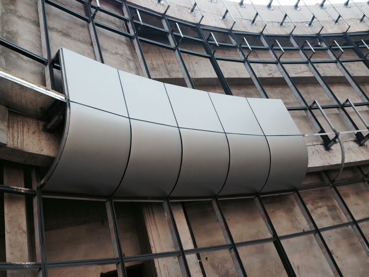 双曲铝单板幕墙一般而言对表面展开切割,划线,刻角,雕刻,开槽,弯曲,轧制,全然焊接,焊接,抛光,抛光和安装角度,因此生产双曲铝单板更为不便,需更高的机器精度和技术工人的操作要求,因此它具有很强的技术含量。