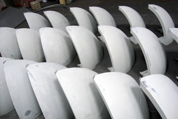 钣金加工主要用于双曲铝单板的外观和尺寸的“一般方向”加工。加工过程通过切割,折叠,弯曲,焊接,抛光和其他工艺将铝单板加工成形状和尺寸,这部分过程确定了举足轻重的参数,例如铝单板弧度和外观。该过程的第二部分是喷涂。喷涂是在加工过的铝板上喷涂喷漆。有两种种类,一种是手动喷涂,另一种是机械喷涂。机器喷涂一般而言仅适用于常规平板,但是这种铝单板在实际上使用中很少采用。