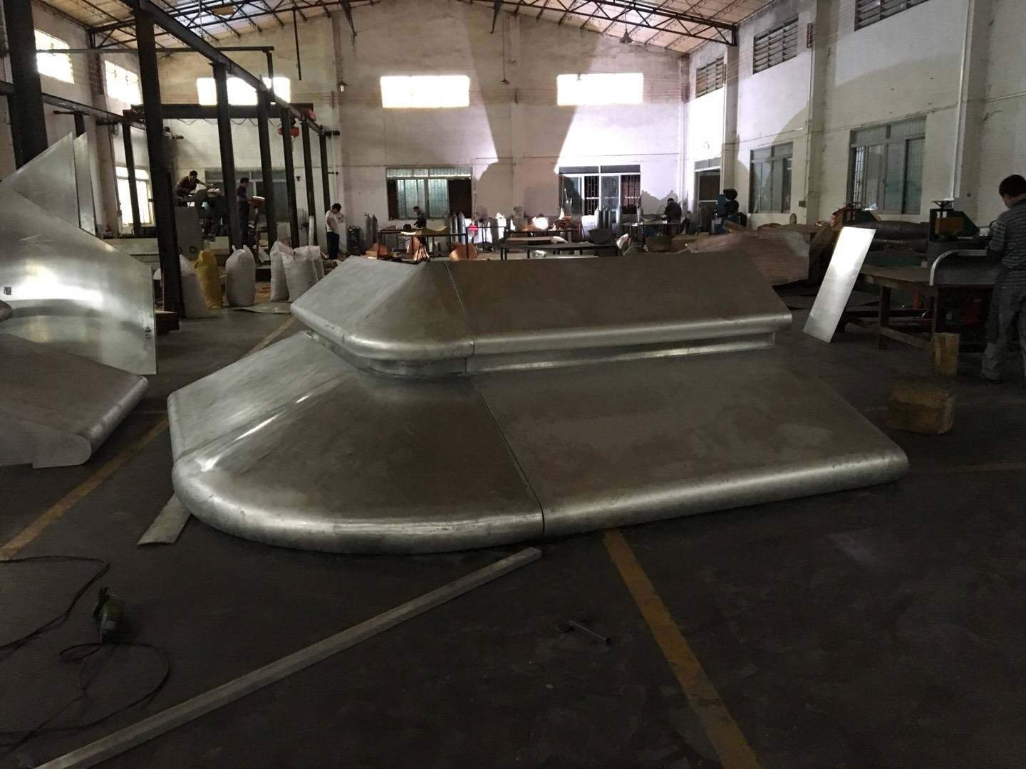 钣金加工主要用于双曲铝单板的外观和尺寸的“一般方向”加工。加工过程通过切割,折叠,弯曲,焊接,抛光和其他工艺将铝单板加工成形状和尺寸,这部分过程确定了举足轻重的参数,例如铝单板弧度和外观。该过程的第二部分是喷涂。喷涂是在加工过的铝板上喷涂喷漆。有两种类别,一种是手动喷涂,另一种是机械喷涂。机器喷涂一般而言仅适用于常规平板,但是这种铝单板在具体使用中很少使用。