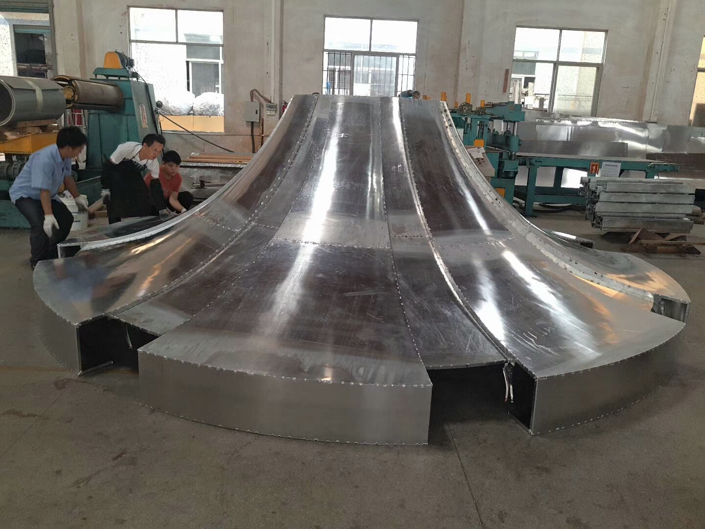 指在同一面板上重合的两个不同的弧,即,从不同的圆心绘图到两个半径的弧。生产比起吃力,对机械精度和熟练工人的操作要求比起高,技术含量高。具备不错的外观展示功效,可以创建个性化的建筑,可以根据各种客户要求开展设计和加工,以满足建设者的个性化施工要求;使用内部构造防水密封,在更大程度上保证其防水性能。还可以在双曲铝单板表面喷涂各种颜色的涂料,以更进一步提高视觉功效。
