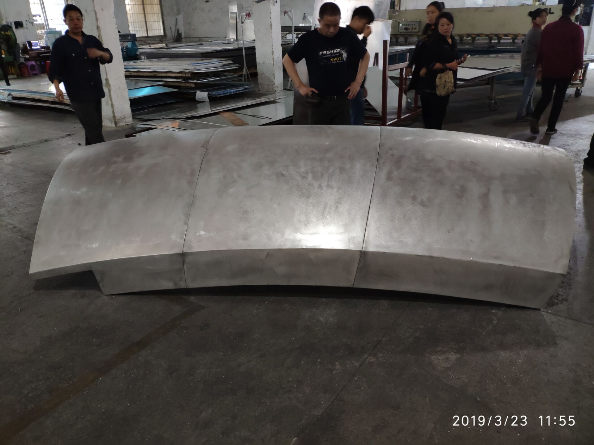 许多人认为弯曲的铝板不过是隐含一定曲铝单板的铝板而已。实质上,它可以划分为:“弧度,双曲铝板和球形铝板等”。工艺难度变得更为繁复。首先,计算整体弧度,然后采用激光无缝焊接,抛光等方式形成曲面,或者说是球形,整个加工过程以及随后的表面喷漆劳动强度很高,因此成本很高。那么,单弯曲铝单板和双曲线铝有什么差别?