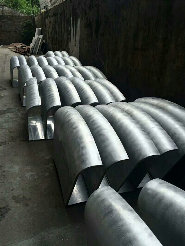 热处理方法:将铝板卷成大略双曲线的形状,然后加热,然后将其放在预制模具上,然后用锤子渐渐敲打以形成,然后切割,焊接,折叠,抛光和上光。整个过程需十分小心翼翼以确保双曲线铝板的表面质量,这种成型方法十分适当模型相对较小且弧度变化较大的组件,当模型大小较大且复杂时,可以被认为是分为小块,然后拼凑成大块。这种双曲线铝板成本高,施工周期长,表面难以确保,因此在划分双曲线铝板时须要考虑后续加工的难度;滚压成型方法:该方法是对滚压机开展一些修改,将其中一个轴改动为凹面,将另一个轴改成为凸面,此方法可以形成类似于球形表面的准则双曲线铝板。它的加工范围很小,但对于一些弧度较小的双曲线铝板兼具很大的优势。