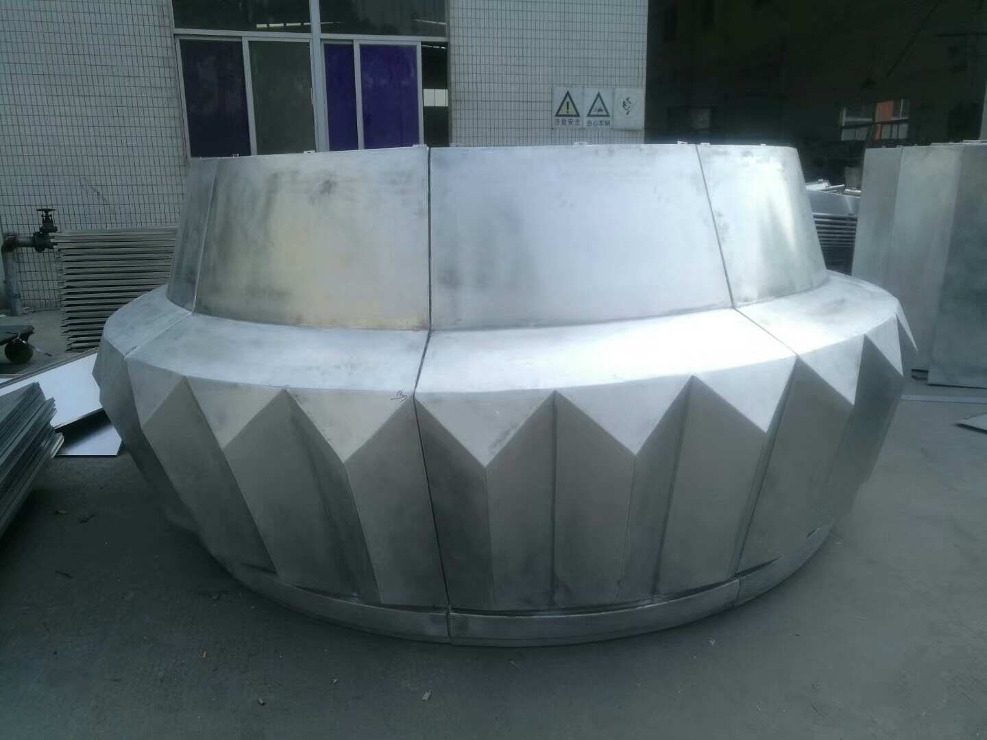 钣金加工主要用以双曲铝单板的外观和尺寸的“一般方向”加工。加工过程通过切割,折叠,弯曲,焊接,抛光和其他工艺将铝单板加工成形状和尺寸,这部分过程确定了最主要的参数,例如铝单板弧度和外观。该过程的第二部分是喷涂。喷涂是在加工过的铝板上喷涂喷漆。有两种种类,一种是手动喷涂,另一种是机械喷涂。机器喷涂一般而言仅适用于常规平板,但是这种铝单板在实际上使用中很少用到。