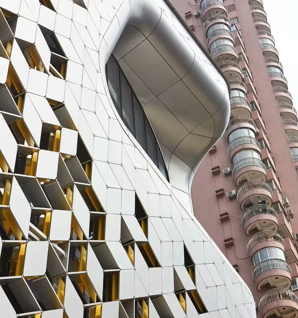 双曲铝单板作为外部装饰的主要选择,在碱性脱脂,碱腐蚀,酸洗,铬化和纯水洗涤后喷涂双曲线铝单板。双曲线铝单板和铝塑板是铝制幕墙的两种典型产品,它们可以根据实际要求选取。