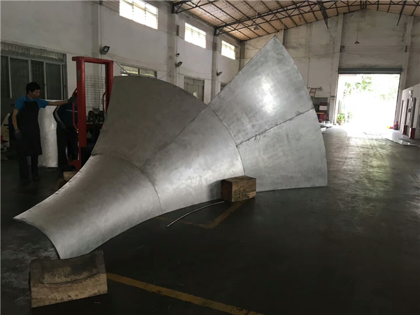 在钣金阶段,双曲铝单板最难的是如何将钣金加工成形状,有很多方式可以加工成双曲铝单板,互联网上也有很多文章专门谈论它们,模具也很多,其中一些十分可行,有些很难加工。在喷漆阶段,由于双曲铝单板是一种非常规的板式,有些组件甚至不能达到自动喷涂的范围如果使用静电喷枪开展喷涂,很容易引致木板表面涂料分布不均匀,最后表面喷涂效用不好,因此须要使用手动喷涂,因此需大量的人力在钣金和喷涂方面,这是其较长加工周期的部分缘故。