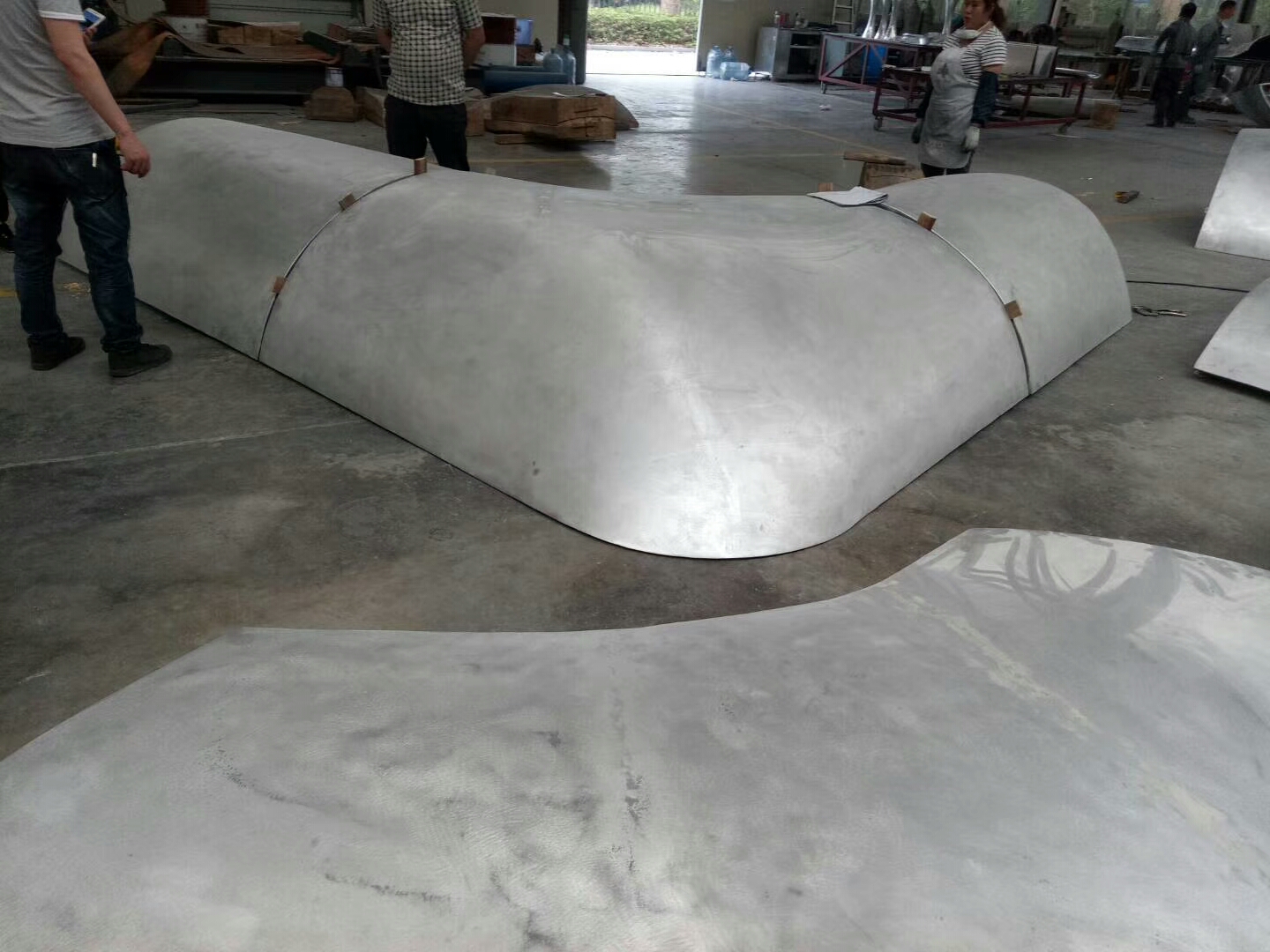 其实,我们常见的波浪形铝单板是单轨铝单板,双曲铝单板像什么?双曲线铝单板指的是同一面板上两个不同弧线的重叠,即从不同的圆心分成两个半径,无论是单曲铝单板还是双曲铝单板公司的生产和加工技术都十分繁复。整个处理过程对处置制造商的硬件和软件有很高的要求。一般而言,小型加工商无法生产弯曲的铝单板。只有大型制造商才有着这种能力,许多人认为弯曲的铝单板只不过是含有一定弧度的铝单板而已。其实,弯曲铝单板可细分为单弯曲铝单板,双曲铝单板,球形铝单板等。该过程的难度也逐渐繁杂。首先,须要进行整体的弧度计算,然后进行激光无缝焊接,抛光和研磨等,以形成曲面或球体。整个处理过程和随后的表面涂料十分耗时且劳动强度大。开支自然不便宜。
